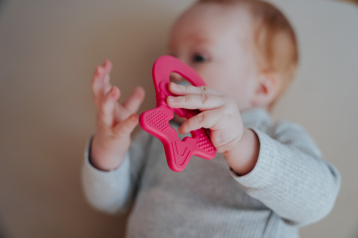 Dentistar Teether "Csillag" rágóka 3 hónapos kortól, sötét rózsaszín