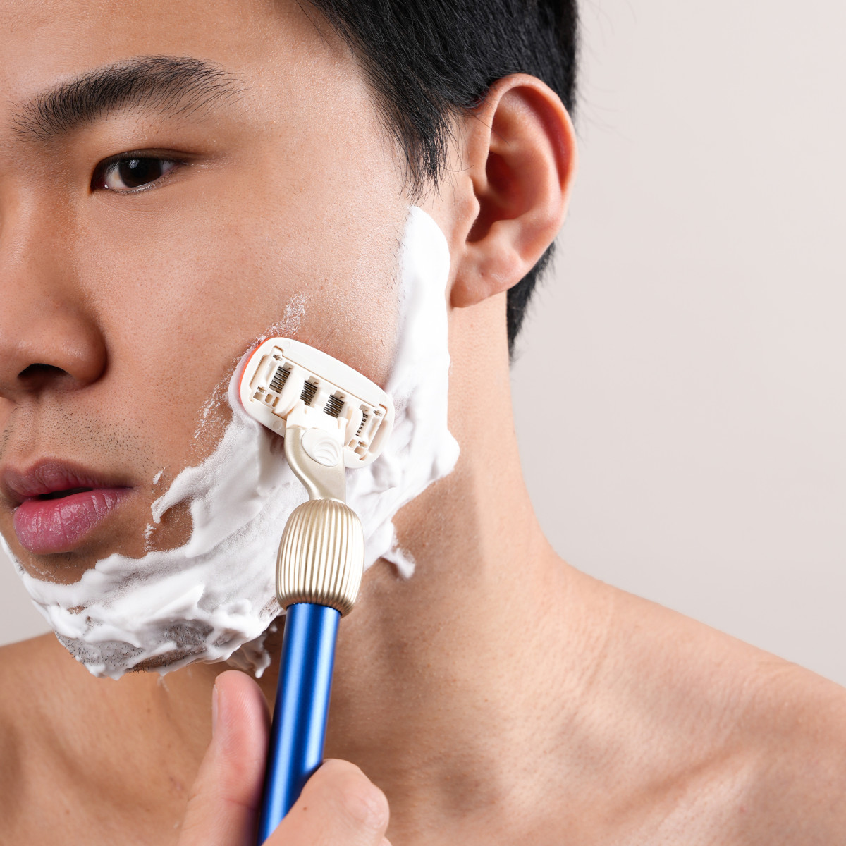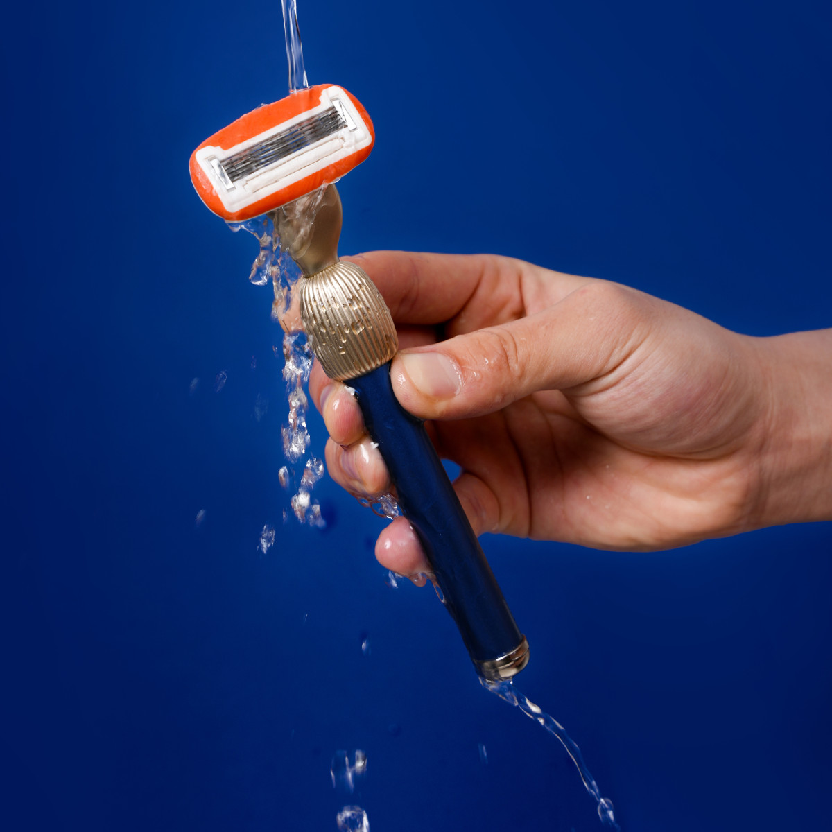2. lépés - Nedvesítse be a borotvafejet, hogy aktiválja a kenőgyűrűt, és borotválja a szőrzetét a teste bármely pontján.