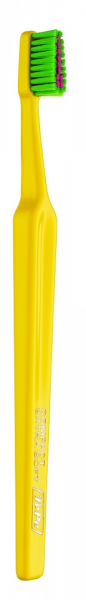 Népszerű fogkefe kicsi, háromszög alakú fejjel, lapos nyéllel extra puha, egyenes metszésű sörtékkel, élénk színekben. Teljes leírás