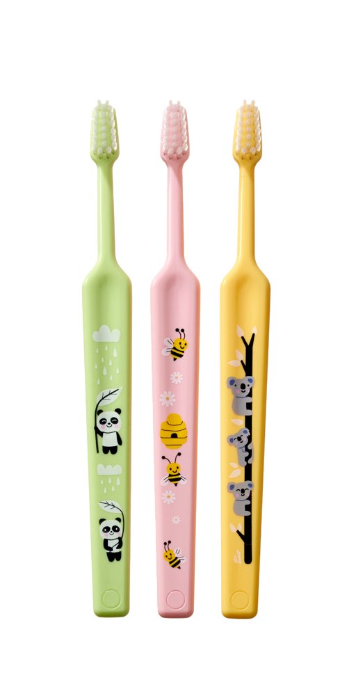 A fogkefe kisgyermekek számára, az első fog kibújásától egészen 3 éves korig alkalmas. Kis háromszög alakú fej a könnyű tisztításért, 1760 extra puha, egyenes metszésű sörtékkel ellátva, kíméletes a nagyon érzékeny gyermek ínyhez és az előbújó fogacskákhoz. A lapos nyél biztosítja a kényelmes fogást, a kefe fejének dőlése állítható forró vízben történő felmelegítés után, a nyaki rész kívánt helyzetbe való hajlításával. Bliszteres csomagolásban, amely mindig különböző színkombinációkat tartalmaz.