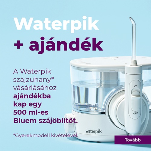 A maximális megelőzést és gondoskodást a Waterpik szájzuhanyok biztosítják. Ha október 31-ig bármelyik modellt megvásárolja (a gyermekverzió kivételével), ajándékba adunk mellé egy 500 ml-es BlueM szájöblítőt, amely segíti az íny regenerációját.