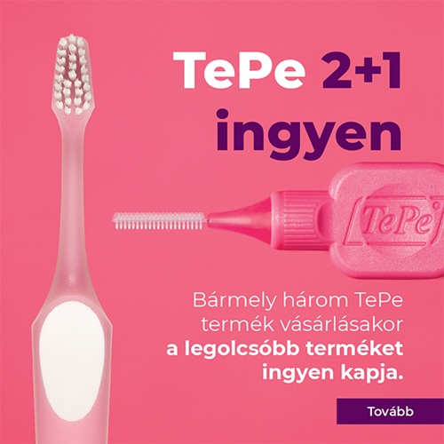 A harmadik termék ingyen – ez már önmagában is ok a mosolyra! A szakemberek által ajánlott szájápolási márkák, a svéd TePe és a japán G.U.M. most különleges 2+1 akcióban kaphatók. Mindkét márka kínálatából könnyű három olyan terméket választani, amelyek a fogak és az íny egészségét szolgálják. A legolcsóbbat (vagy egyszerűen az egyiket, ha három azonos terméket választ) ajándékba adjuk.
